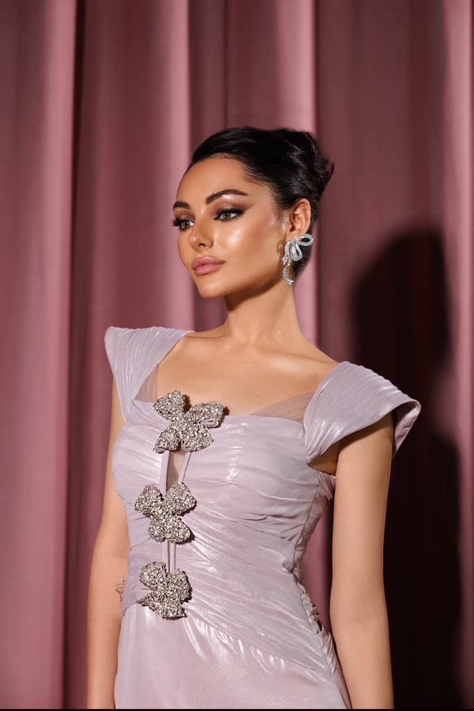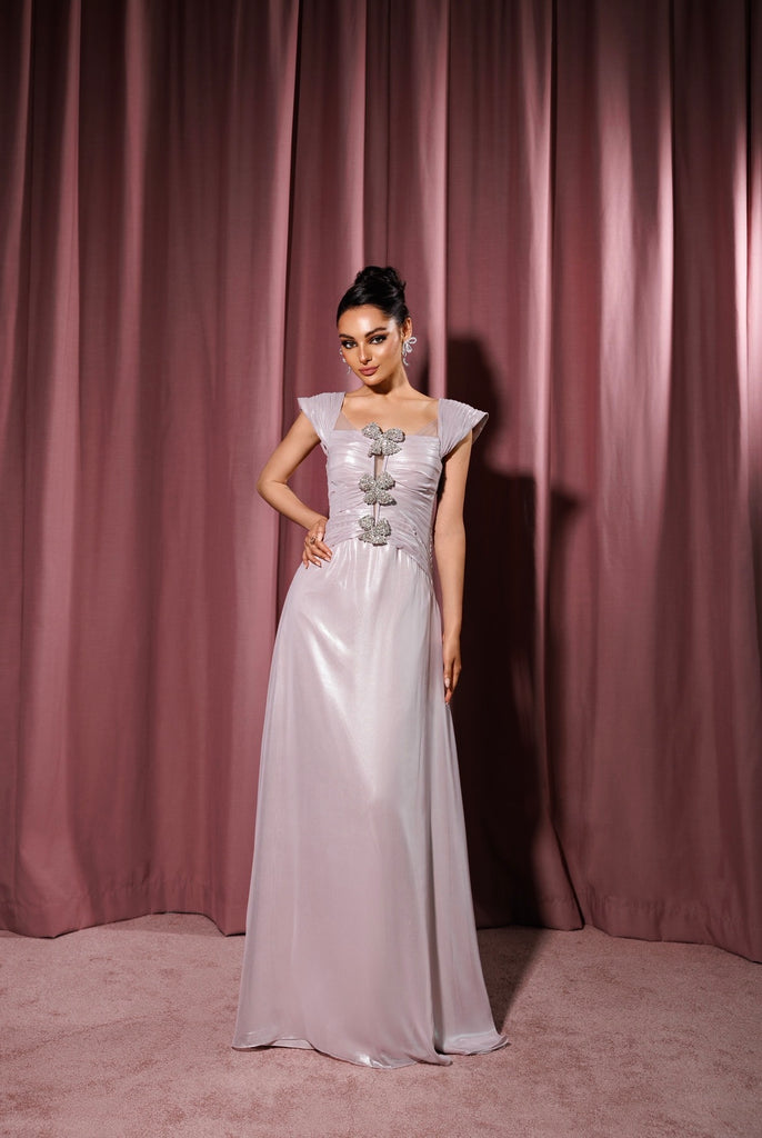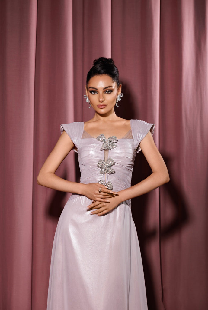Shiny chiffon dress with crystal bows